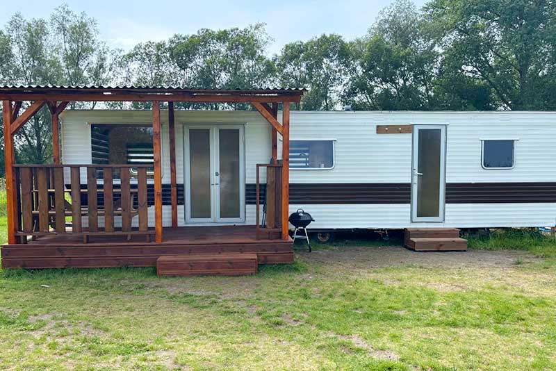 Komfortowy domek typu holenderka z zadaszonym tarasem i miejscem do wypoczynku na świeżym powietrzu. Wnętrze wyposażone we wszystko, co potrzebne na wakacyjny pobyt – funkcjonalna kuchnia, część dzienna oraz sypialnie zapewniają wygodę podczas letniego wypoczynku.